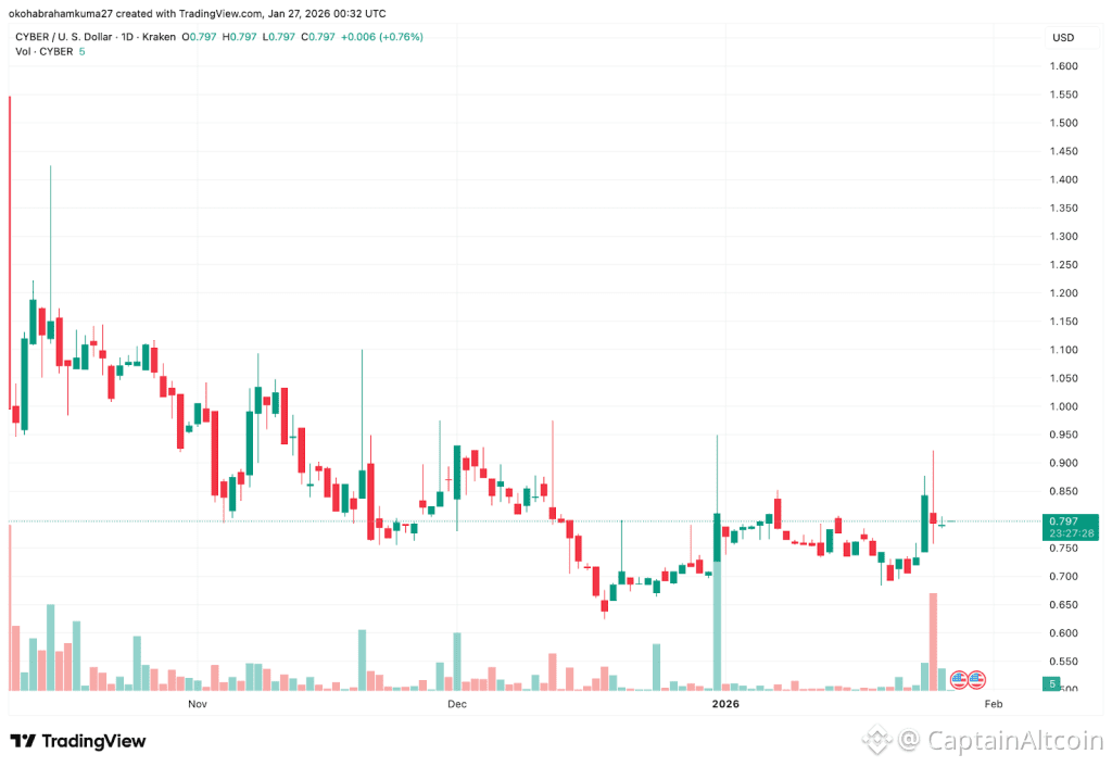 Cyber has emerged as a resilient contender among AI sector picks. With a price increase of 10% in the last seven days as of January 26th, Cyber is outperforming the global cryptocurrency market, which is down 5%. This positive momentum suggests that investors are rotating capital into smart contract platforms that offer scalability and social utility.