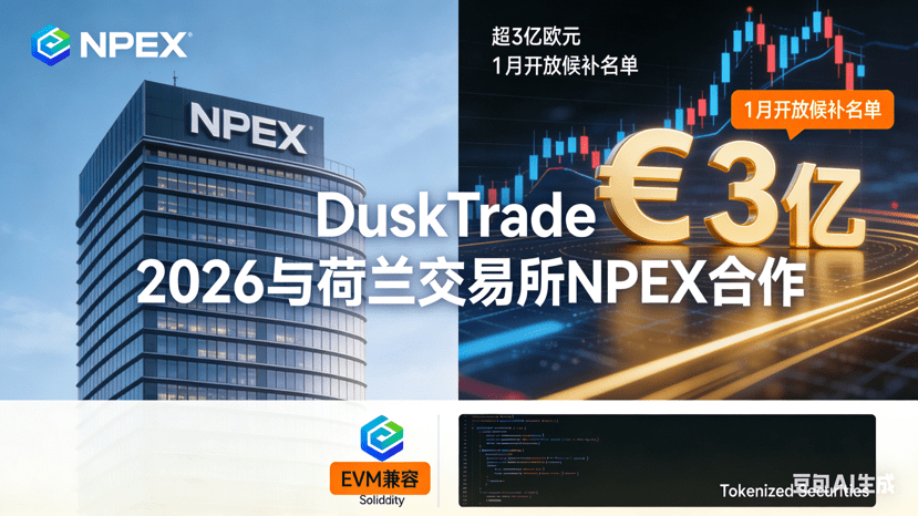 Another major layout is the DuskTrade, set to launch in 2026, which is Dusk's first RWA application, jointly created by the project and the Dutch compliant exchange NPEX, which holds MTF, brokerage, and ECSP licenses. As a compliant trading and investment platform, DuskTrade will bring over 300 million euros of tokenized securities on-chain, a benchmark scale in the RWA field. Currently, the platform's waiting list has opened in January, which is undoubtedly an opportunity not to be missed for investors interested in traditional asset tokenization.