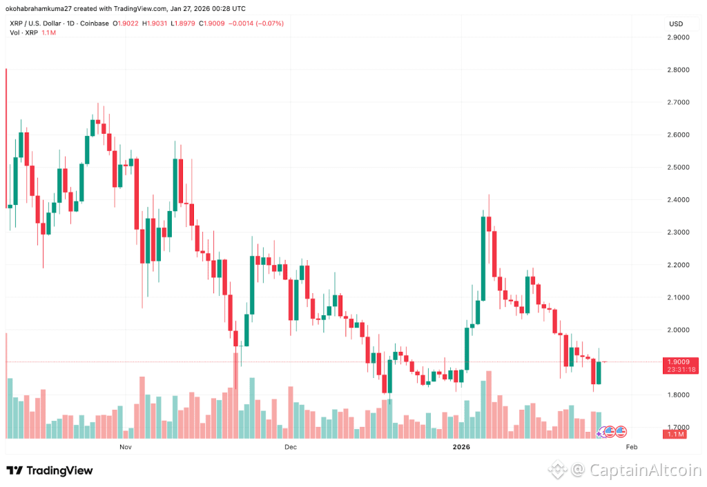 The current XRP price outlook is a mixed bag of resilience and stagnation. XRP has seen a price decline of 3% in the last seven days as of January 26th, which, while negative, is actually outperforming the market’s 5% drop. The trading volume of XRP has exploded to over $3.6 billion in the last 24 hours, representing a 105.30% increase.