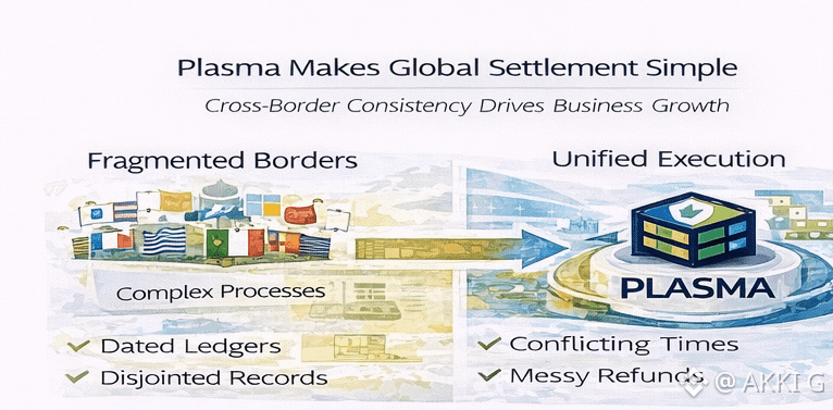 Plasma is designed to function as a neutral settlement layer across borders. Instead of adapting behavior to jurisdictional quirks, Plasma enforces consistent execution regardless of origin or destination. Settlement windows remain defined. Refunds follow the same disciplined logic. Records stay linked across regions. This neutrality allows global commerce to behave as a single system rather than a collection of local exceptions.