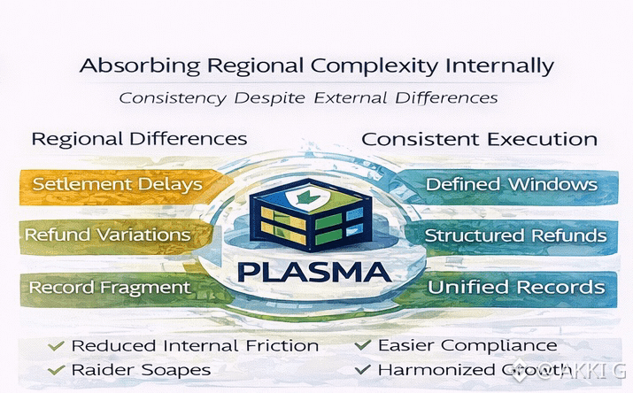 Moreover, neutrality reduces internal friction. Finance teams no longer maintain separate assumptions for different markets. Compliance teams work with unified records instead of fragmented trails. Operations teams rely on the same timing logic everywhere. Plasma absorbs cross-border complexity internally so businesses do not have to build parallel processes for each region.