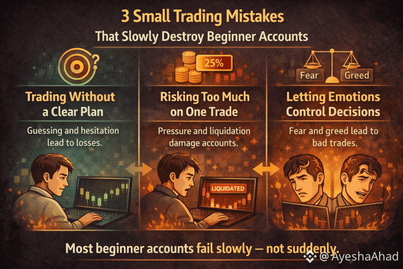 Most beginners believe accounts are destroyed by one big mistake. In reality, accounts are usually destroyed by small mistakes repeated daily. These mistakes feel harmless at first, but over time they quietly drain capital and confidence.