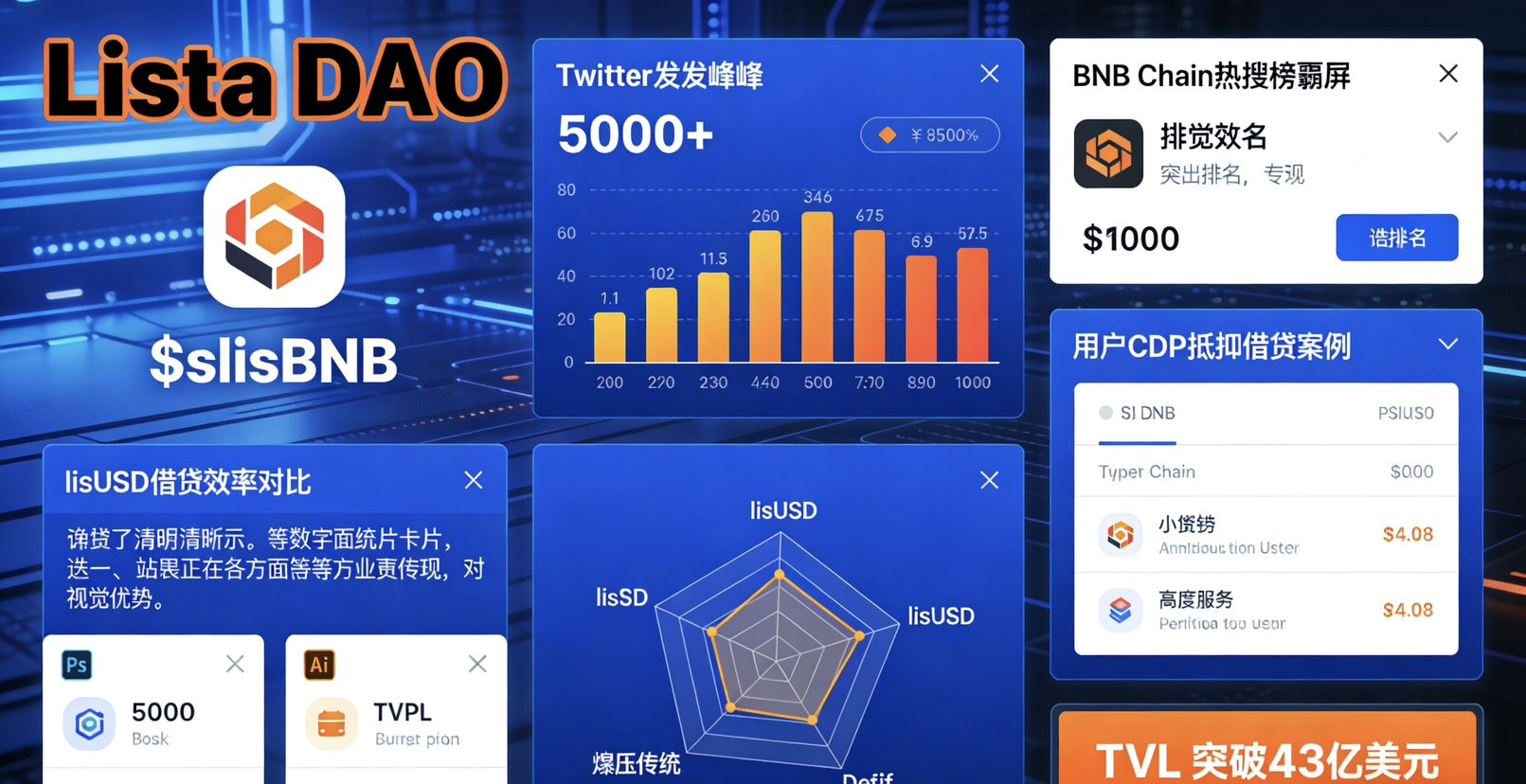 如果你还在为DeFi的复杂性烦恼,赶紧关注@ListaDAO 吧!这里不仅是信息源头,更是财富增长的引擎。Lista DAO的Twitter数据证明,它正引领BNB Chain的下一波浪潮:从流动性质押到借贷一站式解决,TVL的持续攀升预示着更多惊喜即将到来。加入这场狂欢,slisBNB的空投机会就在眼前,谁说普通用户不能成为链上大佬?快来见证@ListaDAO 如何用数据和互动,点燃你的投资激情!