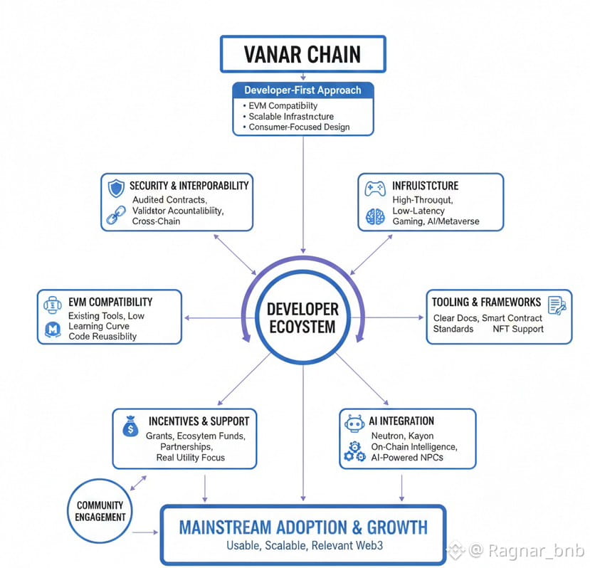 So, Vanar Chain gives developers a working, expandable, and easy place to build blockchain apps. Compatibility makes things easy, a system handles high-speed uses, and AI tools open up new experiences. Along with incentives, security, and the ability to work with other systems, Vanar’s whole setup is designed for long-term growth.