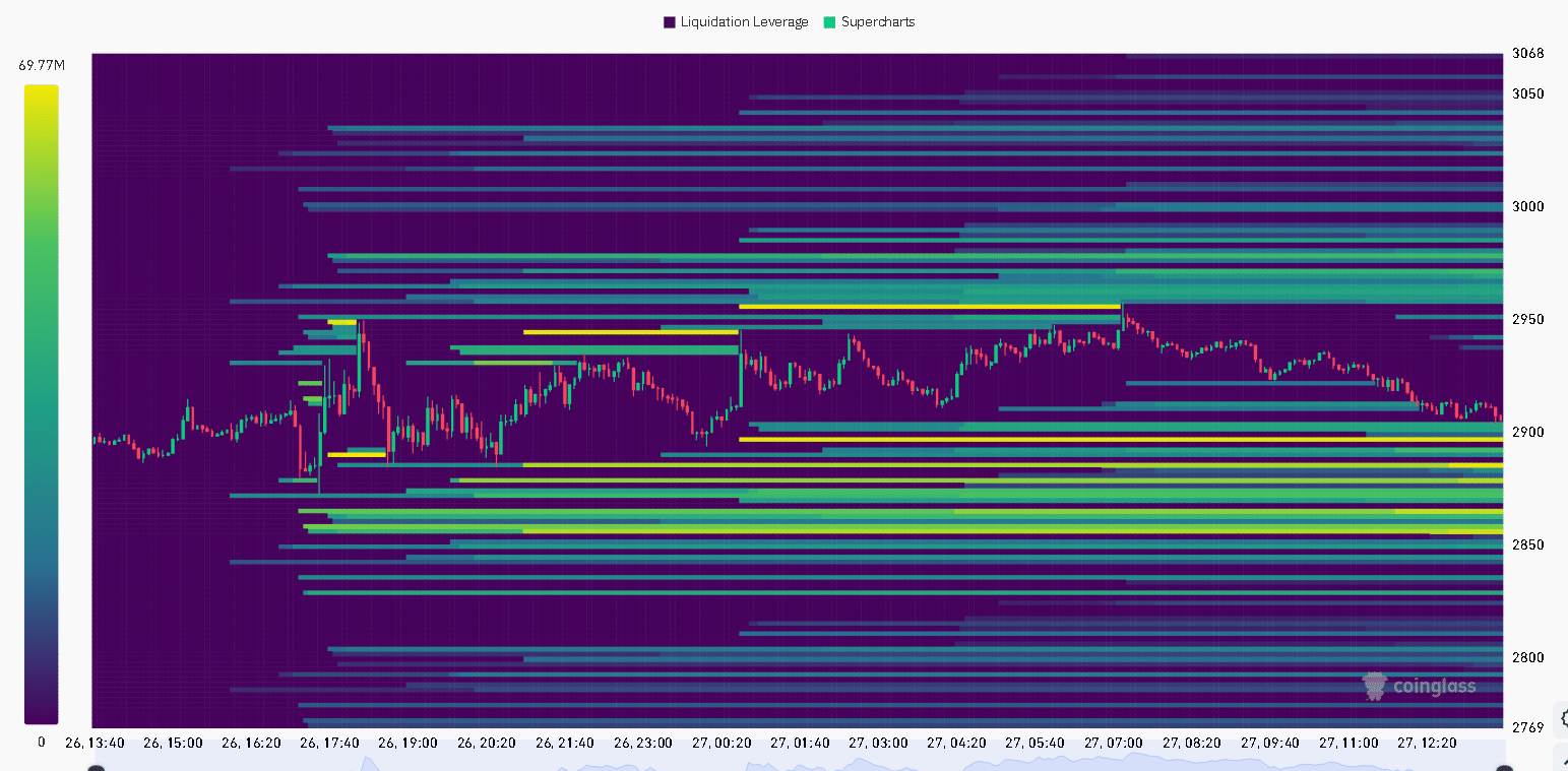 During the price correction phase, a clear liquidity accumulation zone has formed around $2,900 and $2,850. Large buy orders in these areas have attracted big whales into the market, providing solid support. In other words, as long as the price holds within these ranges, bulls have the opportunity to regain momentum.