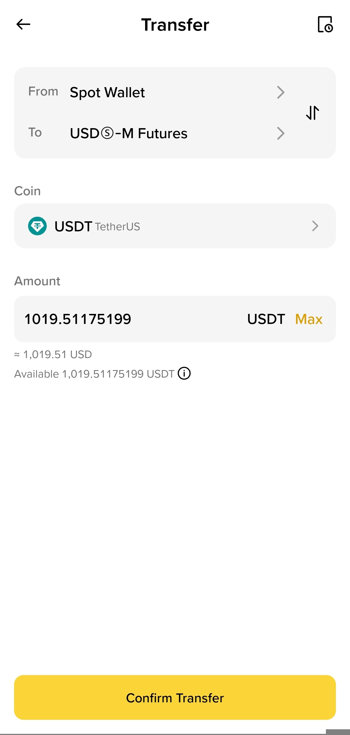 • ​Move USDT from your Spot Wallet to your USDⓈ-M Futures Wallet. (You need money in the Futures wallet to trade this).