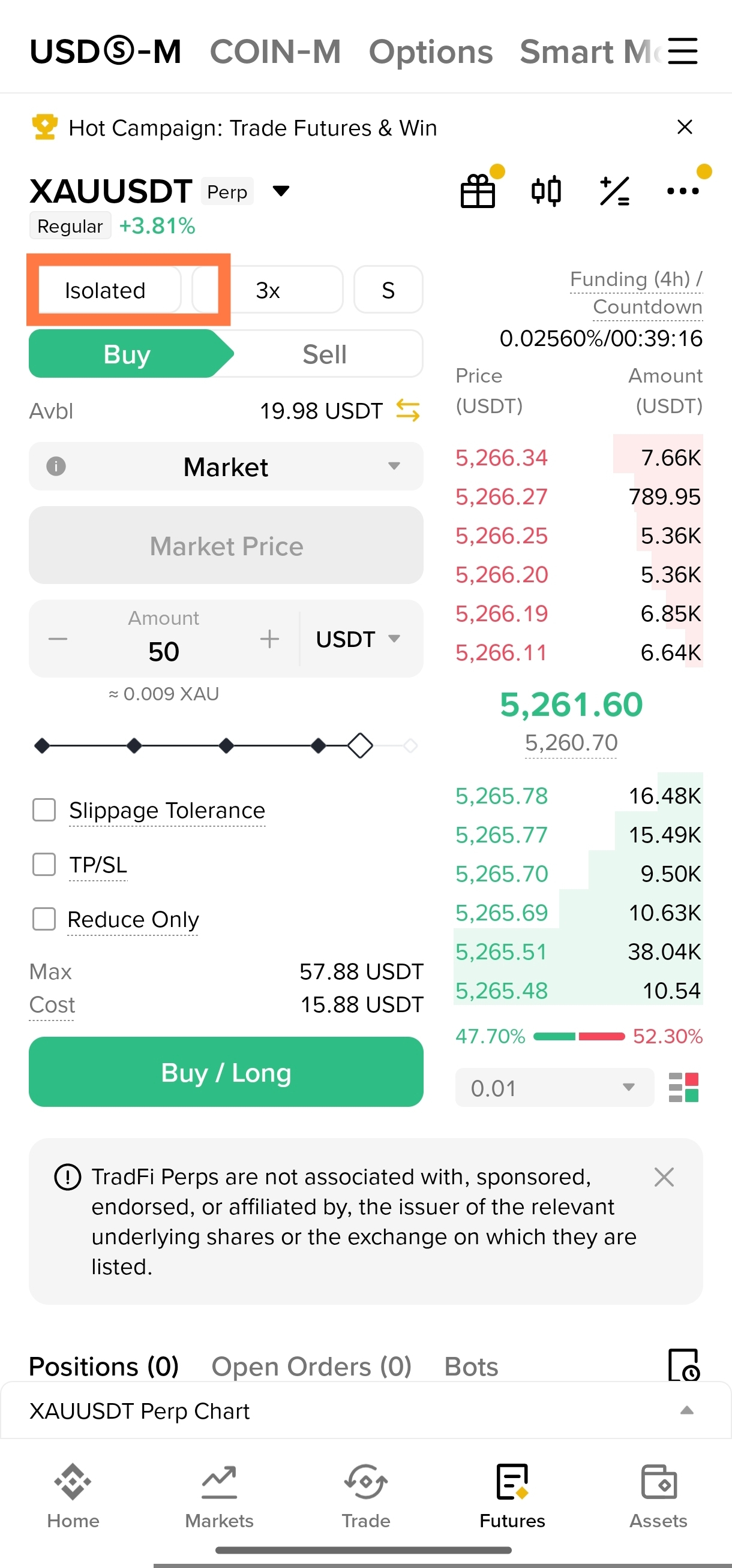 • ​Tap on the [Futures] tab at the bottom of the screen.