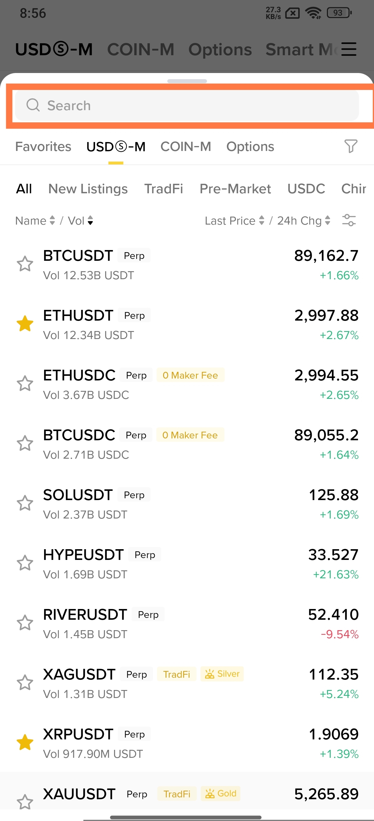 • ​Tap the search bar (top left corner, where it usually says BTCUSDT).