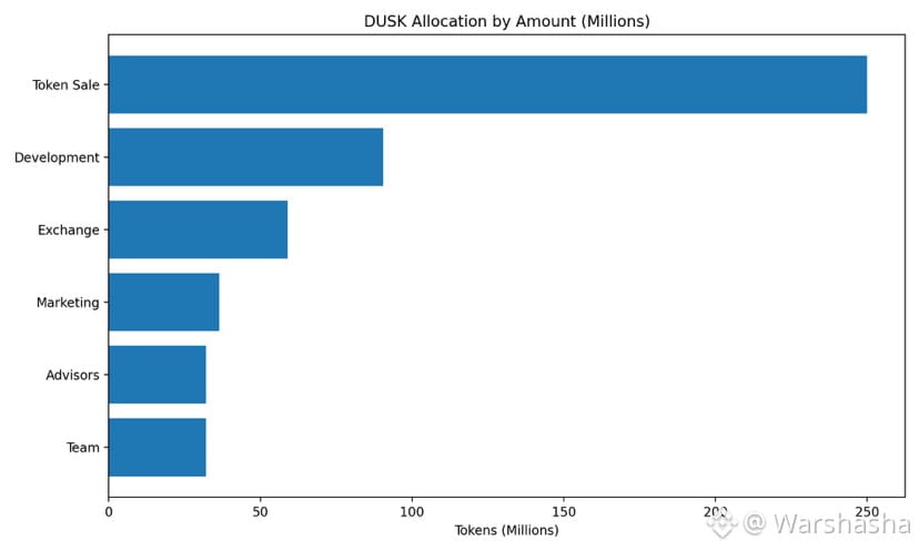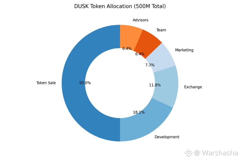 $DUSK isn’t just a “fee token” in the abstract. In Dusk’s design it sits at the center of the network’s incentives: transactions, staking, and governance, aligning validators and participants with long-term security. And the tokenomics are unusually clear in the official docs: 500M total allocated across token sale, development, exchange, marketing, team, and advisors.