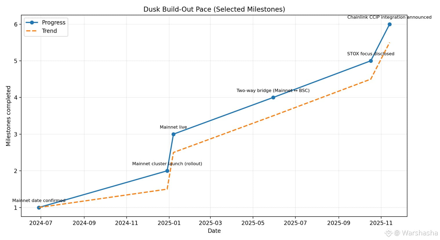 Regulated market direction (STOX): In Oct 2025, Dusk published a clear focus on an internal trading platform initiative (“STOX”) aimed at bringing regulated assets on-chain in an iterative rollout.