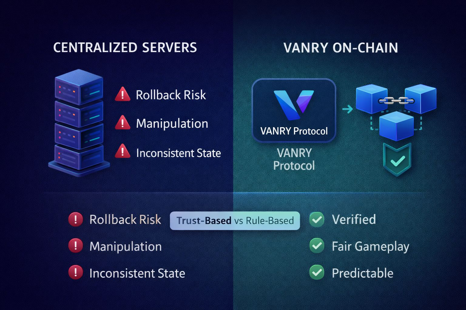 VANRY addresses these problems with a different design approach. It enforces core game logic directly at the protocol layer. Instead of relying on trust in off-chain systems, gameplay rules, asset ownership, and state transitions are defined and verified on-chain. Every action is executed according to predefined rules, which cannot be changed at the backend or operator level.