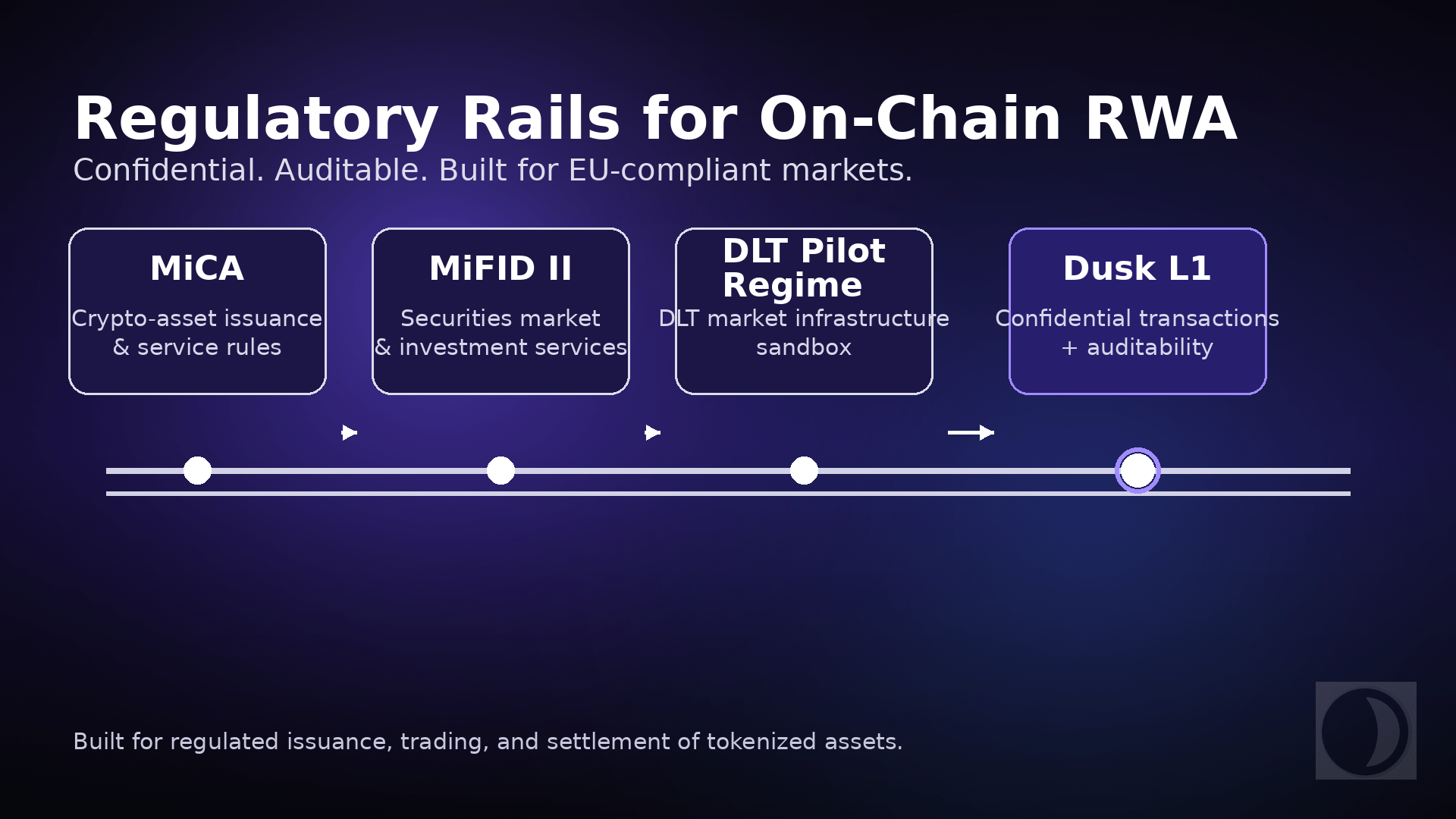If you still consider Dusk as that kind of 'anonymous coin relative that can't go to major exchanges', Azu believes you have probably missed a narrative upgrade. The project team has stated very clearly on their official website—Dusk is a public L1 designed for regulated financial markets, aiming to allow institutional-grade assets to be natively issued, traded, and settled on the chain, while meeting the requirements of the entire regulatory framework including EU MiCA, MiFID II, and DLT Pilot Regime.