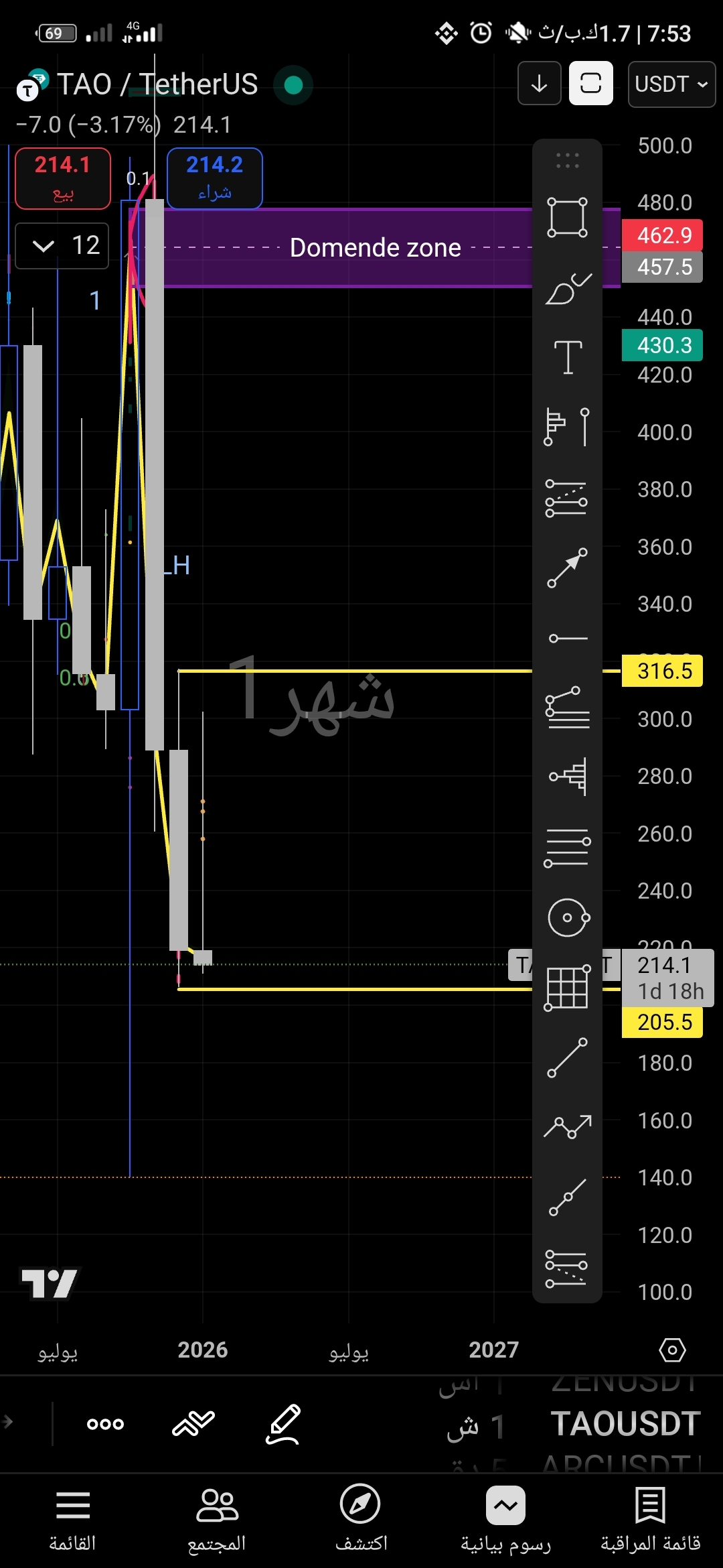 The last candle that did not break the previous monthly low means that sellers have lost their strength at this level, and selling pressure has begun to decrease. Its presence at a historical support makes it a potential reversal point, as sellers are likely to close their positions and exit, which opens the door for buyers to lead the upcoming movement.