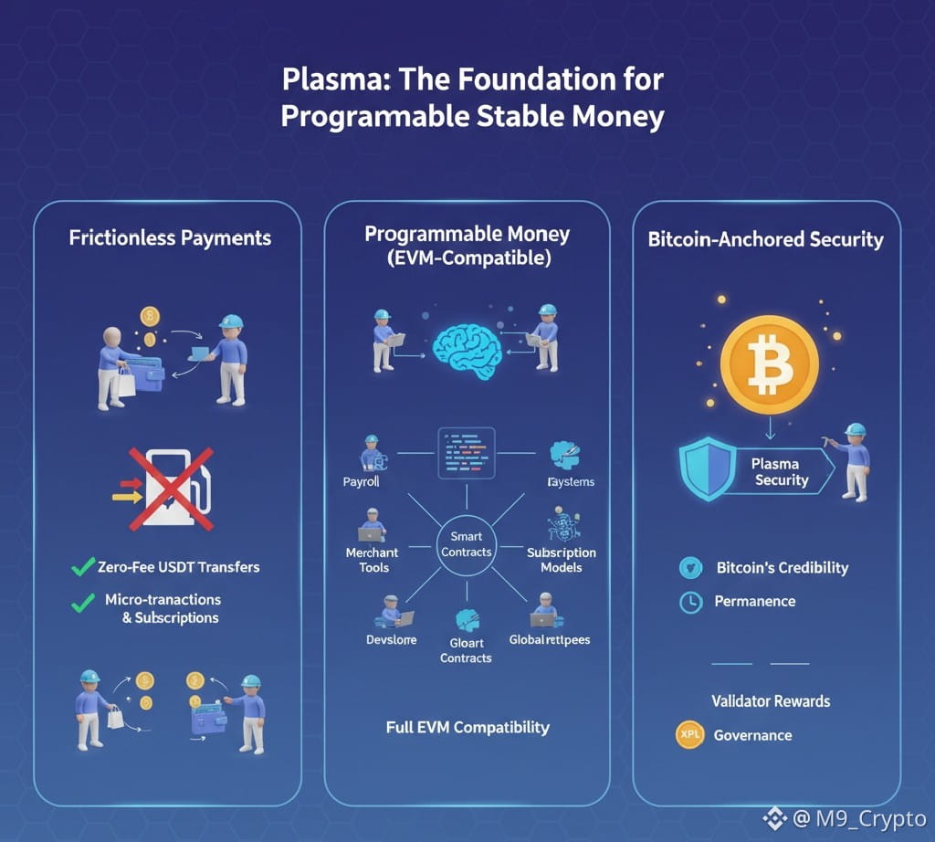 USDT and similar stablecoins are already used globally. People save in them, send them across borders, and settle obligations with them. Yet the experience remains awkward. Users must hold extra gas tokens, fees fluctuate during congestion, and simple transfers feel like interacting with developer tooling rather than money. Plasma exists to remove this friction at the base layer.