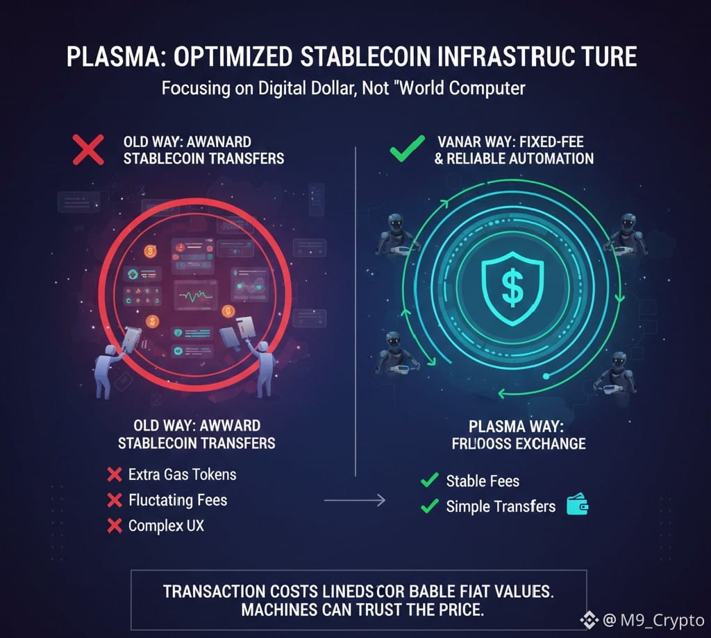 Most blockchains try to do everything at once. Payments, DeFi, NFTs, gaming, identity, and even abstract ideas like becoming a “world computer.” Plasma takes a different path. Instead of expanding horizontally, it narrows its focus around a single observation that most networks overlook: stablecoins have already become the digital dollar, but the infrastructure beneath them is still inefficient.
