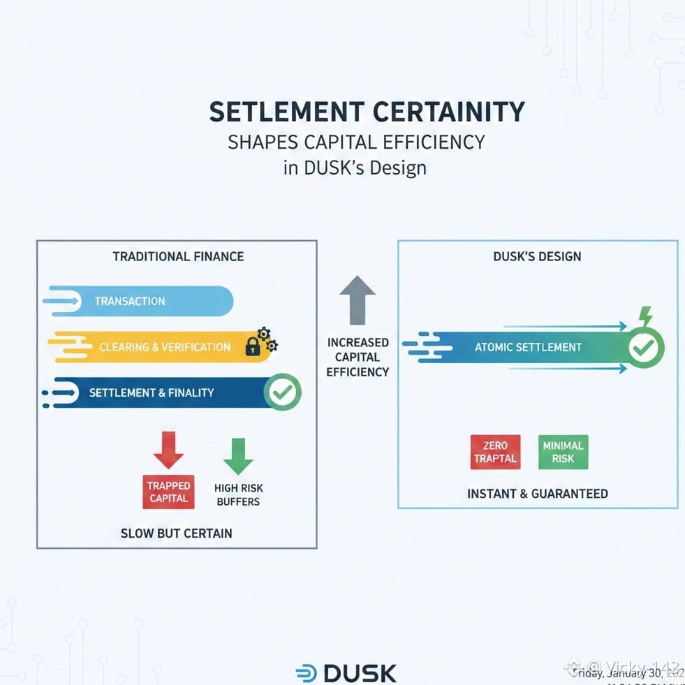Capital efficiency depends on knowing exactly when assets are settled. Institutions cannot reuse funds until obligations are legally and operationally complete. If settlement is probabilistic or reversible risk managers must assume worst case scenarios. This increases collateral requirements and reduces available liquidity.