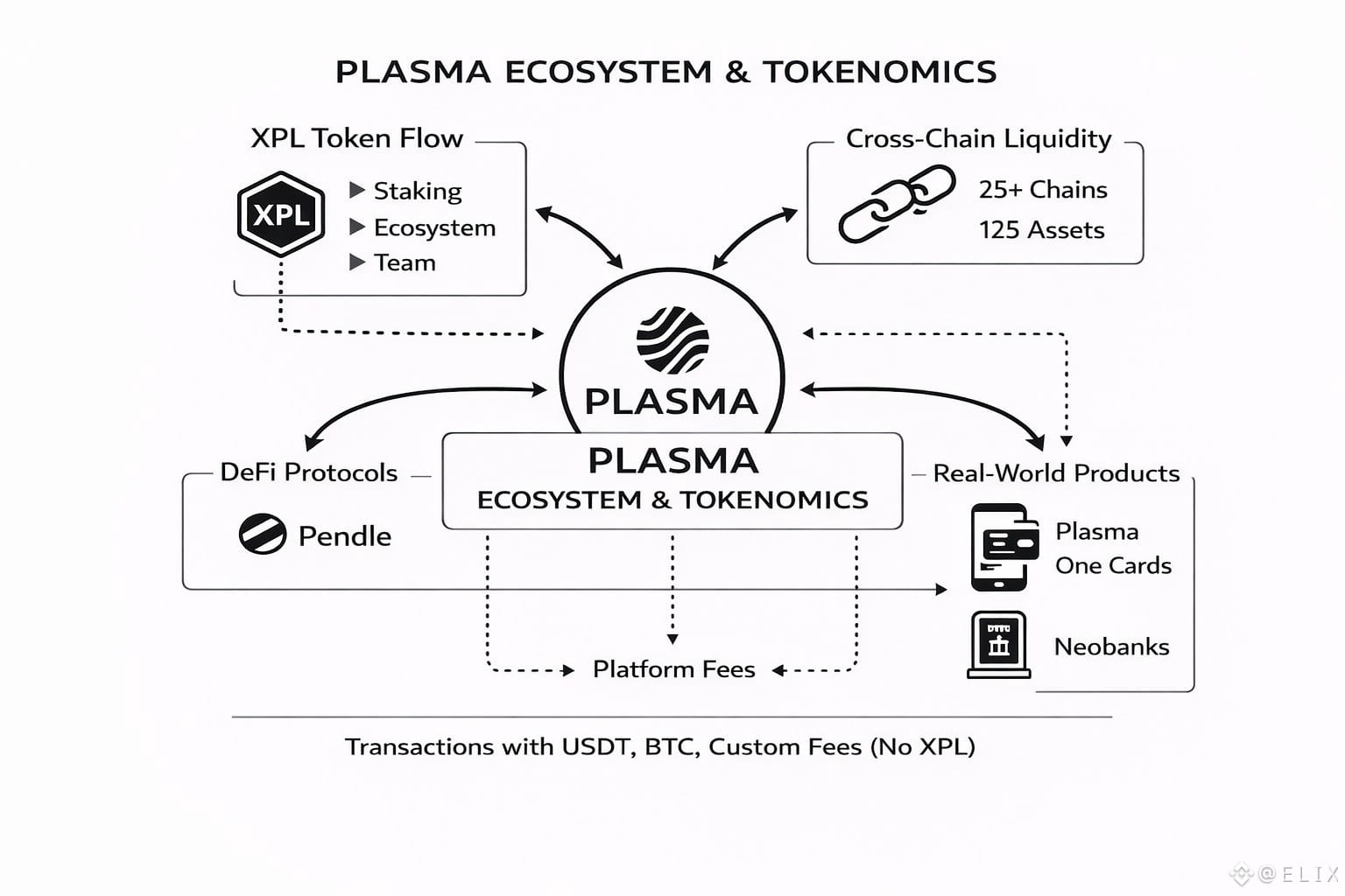 Plasma’s mainnet beta launched on September 25, 2025, with opening liquidity of 2 billion stablecoins, signaling exceptional demand. Cross-chain integrations like NEAR Intents connect XPL and USDT0 with a liquidity pool spanning over 25 chains and 125 assets, embedding Plasma into a larger global settlement network. DeFi protocols such as Pendle are now running on Plasma, providing yield strategies and fixed-income opportunities, extending the network’s value beyond payments into real financial services.