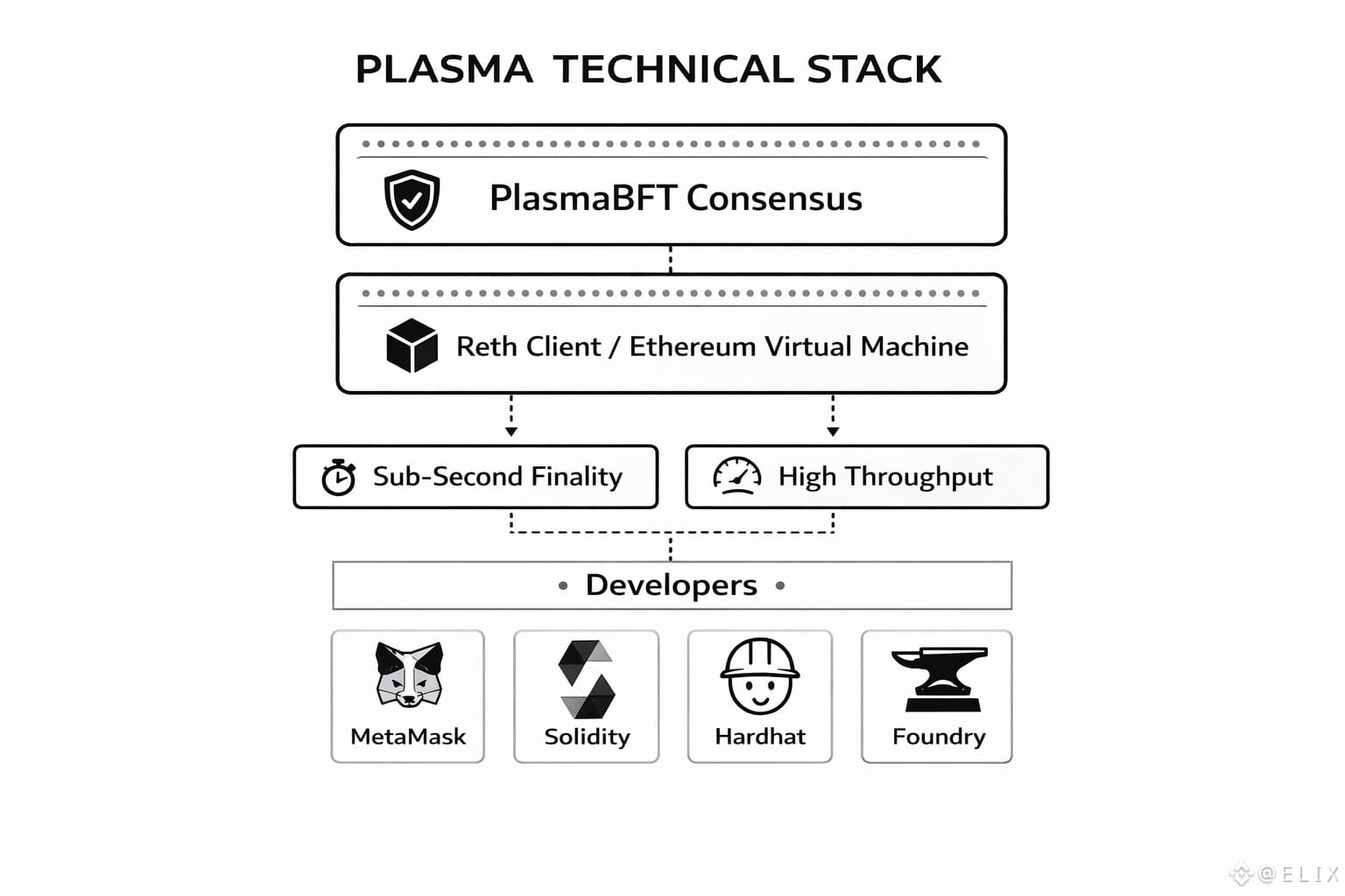 The network is built for scale and reliability, using PlasmaBFT, based on Fast HotStuff (F-BFT), to provide sub-second finality and high throughput, processing thousands of transactions per second. The Ethereum Virtual Machine (EVM) is implemented through the Reth client, allowing developers to leverage familiar tools such as MetaMask, Hardhat, Foundry, and Solidity contracts. This approach transforms Plasma from a stablecoin transfer network into a programmable money platform for issuers and DeFi developers alike.