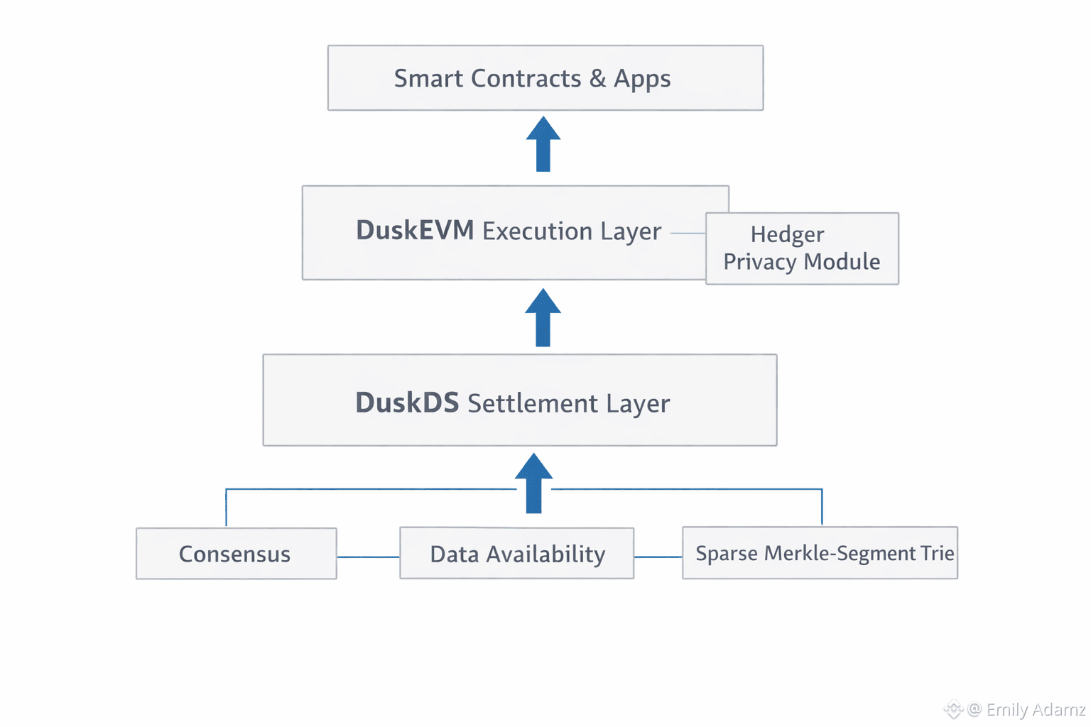 Under the hood, Dusk’s tech stack is built to handle real-world demands. The main engine, DuskDS, manages consensus and data with a committee-based Proof-of-Stake system called Succinct Attestation. Basically, it keeps transactions final and locked in within seconds. Layered on top, DuskEVM brings full Ethereum compatibility, letting developers use Solidity while still getting Dusk’s baseline privacy. There’s also Hedger, which quietly encrypts balances and transfers—perfect for businesses that need to keep sensitive operations private, but verifiable. And the Sparse Merkle-Segment Trie? It tracks all sorts of states—transactions, voting, dividends—while protecting against forgery and keeping updates fast.