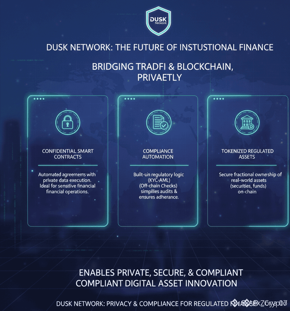 In a broader sense, Dusk represents a shift in how blockchain technology can be applied to finance. Rather than framing decentralization as an alternative to regulation, it treats regulation as a design requirement and privacy as a fundamental right. By doing so, Dusk creates a bridge between traditional financial systems and decentralized technology, enabling real-world assets and compliant financial products to exist natively on a blockchain. The result is a network designed not for speculation alone, but for the long-term modernization of financial markets, where efficiency, trust, privacy, and legal certainty coexist on a single decentralized infrastructure.