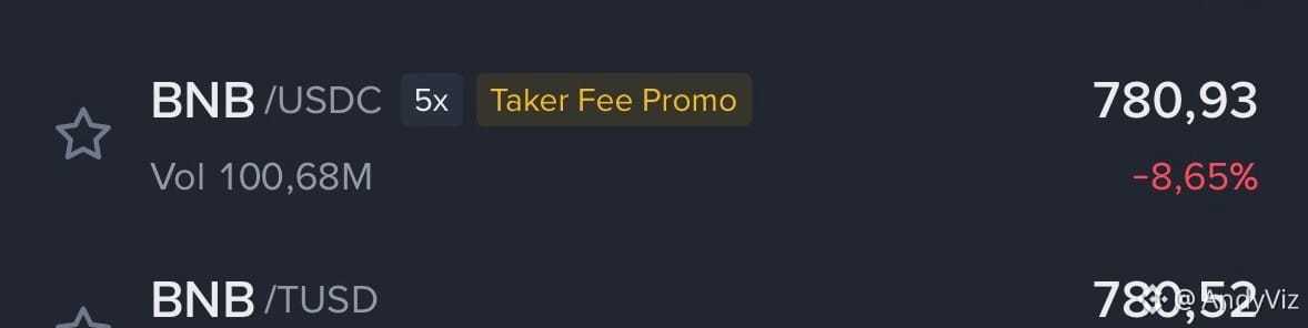 • Meaning: Total exemption from trading fees for that pair. Unlike "0 Maker Fee," this usually applies to both Maker and Taker orders. This is typically seen on major pairs like BTC/FDUSD or when trading between different stablecoins.