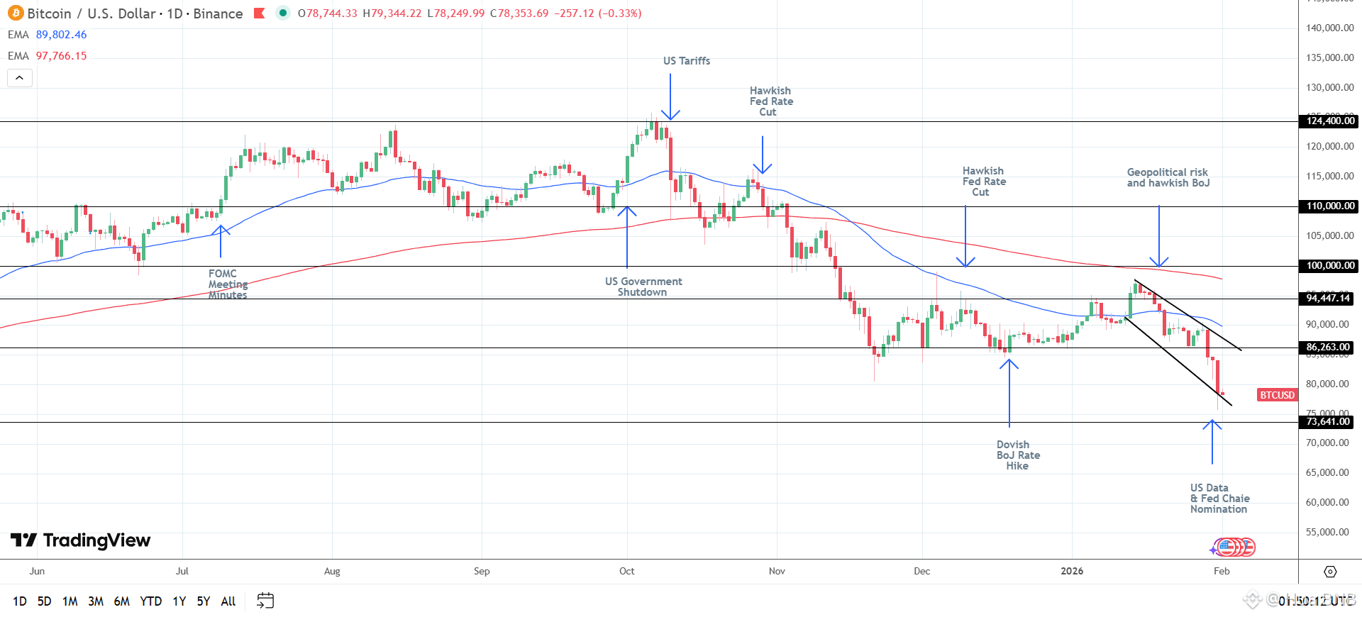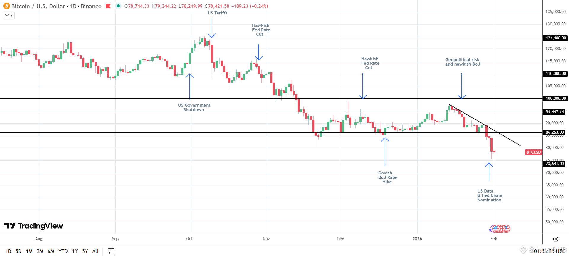 $BTC has once again entered a critical zone after breaking below the $80,000 level, triggering fear across the crypto market. This move did not happen randomly. It was driven by a combination of institutional selling pressure, changing expectations around US interest rates, and growing uncertainty in global financial markets. While short-term sentiment looks weak, the broader picture still holds potential for recovery if key conditions improve.