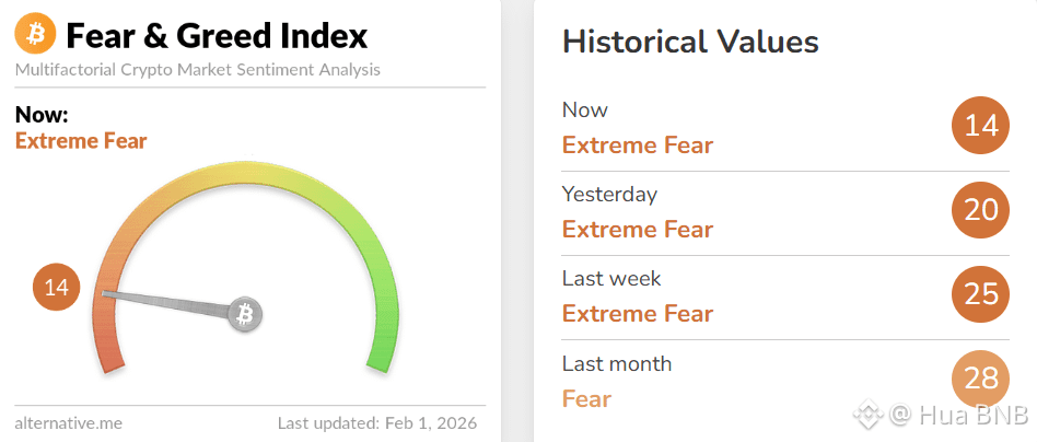 From a sentiment perspective, the market has entered a zone of extreme fear. Historically, these moments often appear near local bottoms rather than tops. When most participants are fearful, selling pressure becomes exhausted and conditions slowly form for recovery. This does not guarantee an immediate rebound, but it suggests that downside momentum may begin to weaken.