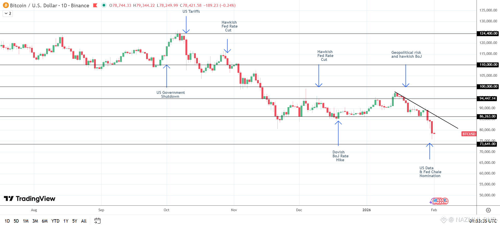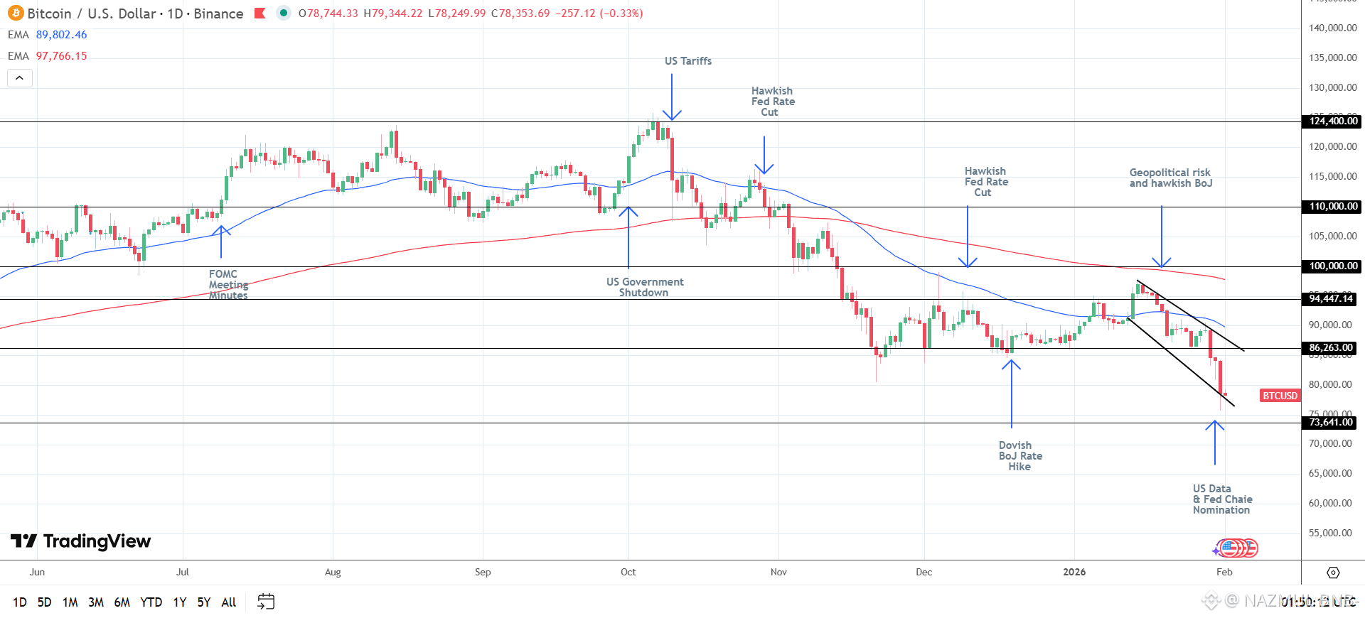 BTCUSD – Daily Chart – 010226 – Bearish Structure