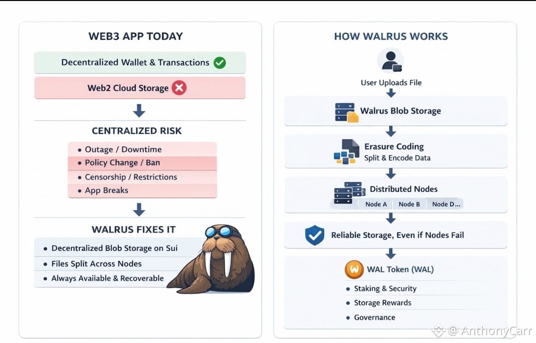 A diferencia de modelos tradicionales de almacenamiento, donde los datos suelen fragmentarse o depender de intermediarios, Walrus propone una arquitectura enfocada en la durabilidad y la integridad de la información. Esto resulta especialmente relevante para sectores como gaming competitivo, contenido digital, activos tokenizados y aplicaciones que requieren que los datos sigan disponibles incluso años después de su creación. En estos escenarios, perder información no es solo un fallo técnico, sino un riesgo para todo el modelo económico.