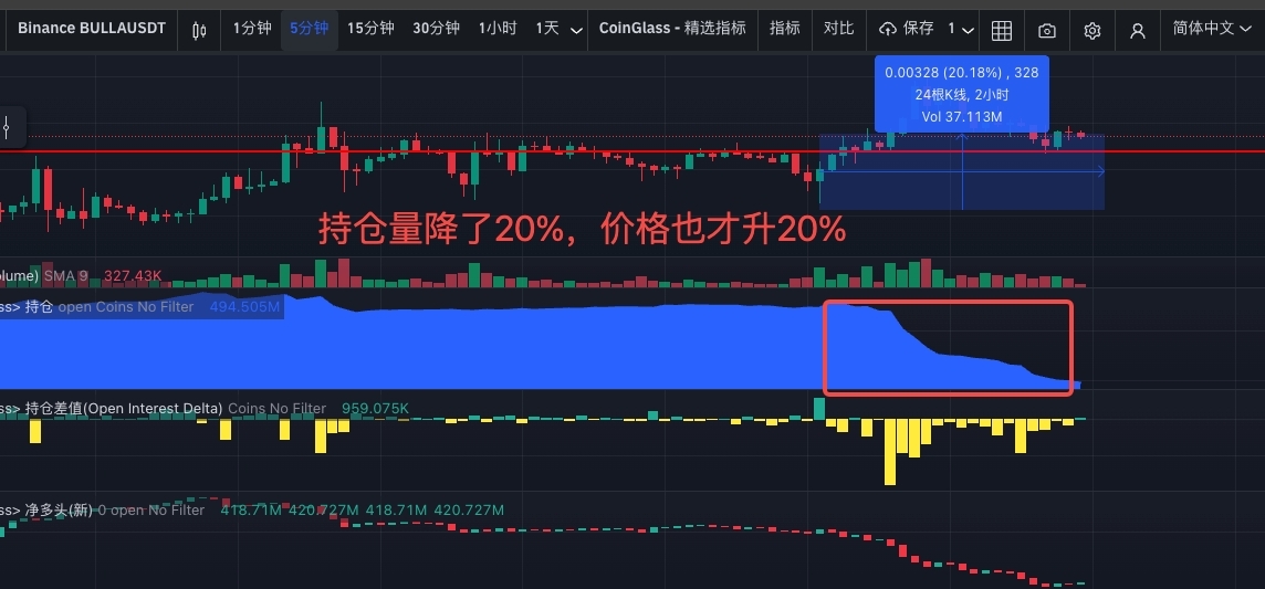 However, we've also achieved a great victory. Since I first posted this article, the price has increased by over 30%, with a peak increase exceeding 60%. And it's probably not over yet; open interest will decrease further, and the price will continue to rise for a while. But don't be greedy; take your profits when it's time to exit, don't linger.