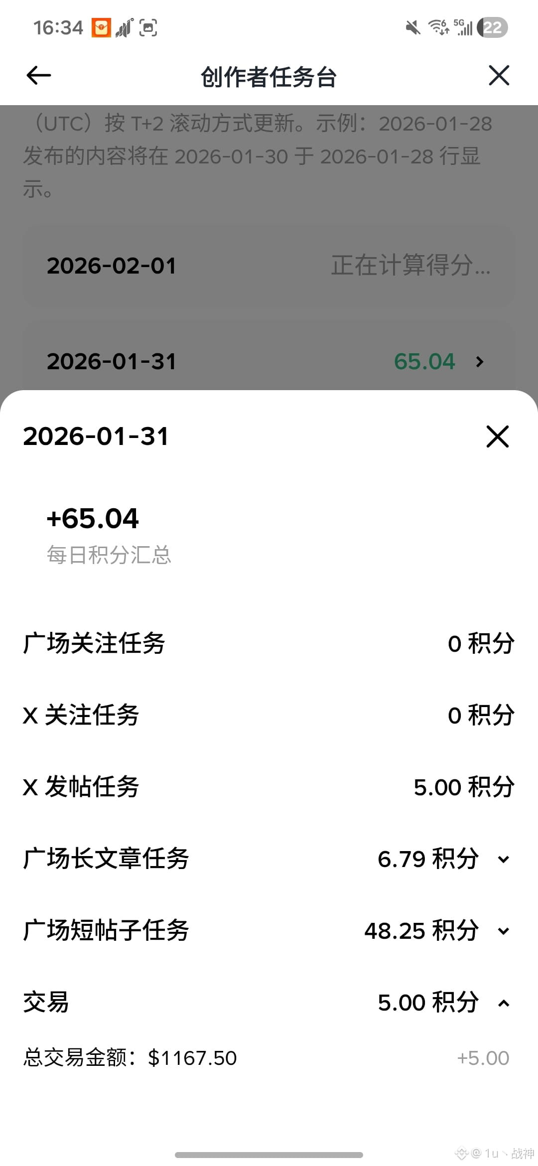 广场短任务就很简单了,一百个字就可以了 要求原创不能抄袭,啥的 还有那种哪里热往哪里蹭,不过很少每天就加个几分,后面就是交易xpl交易量,现货这些至少10u就可以了,10u好像加一两分吧,100u加三四分,1000u加五分,我每天就是合约交易1000u 不贪不长拿,赚一两刀就跑,今天拿了几秒就赚了,赚了就跑。