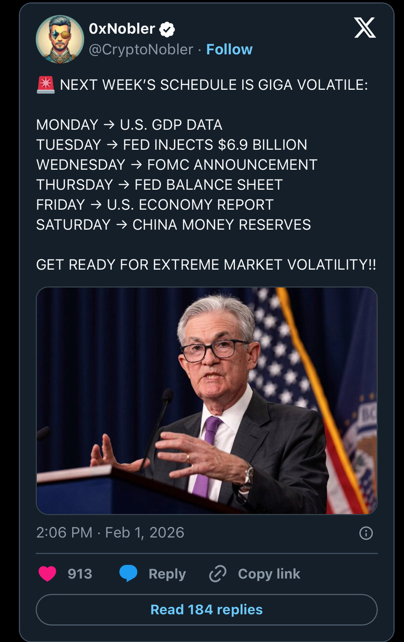 On Thursday, the market will assess the Fed's recent balance sheet adjustment. Saturday concludes the week when China releases its most recent monetary reserve figures, another key metric of global liquidity conditions. All these developments within a short week make the market cautious and could experience significant price volatility.