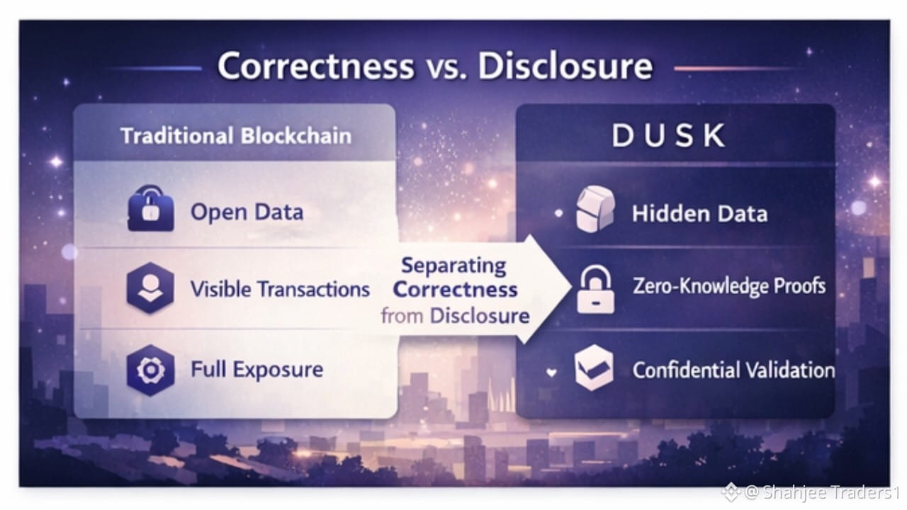 DUSK separates correctness from disclosure using zero-knowledge proofs, enabling confidential yet fully auditable transactions.