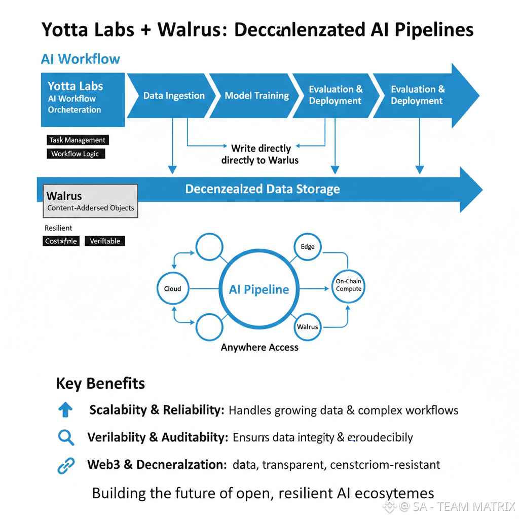 As AI continues to demand larger datasets and more complex pipelines centralized infrastructure will struggle to keep up. By combining workflow orchestration with decentralized storage Yotta Labs and Walrus offer a practical path toward scalable verifiable and censorship resistant AI systems. This integration demonstrates how decentralized primitives can solve real operational challenges in modern machine learning while paving the way for open AI ecosystems.
