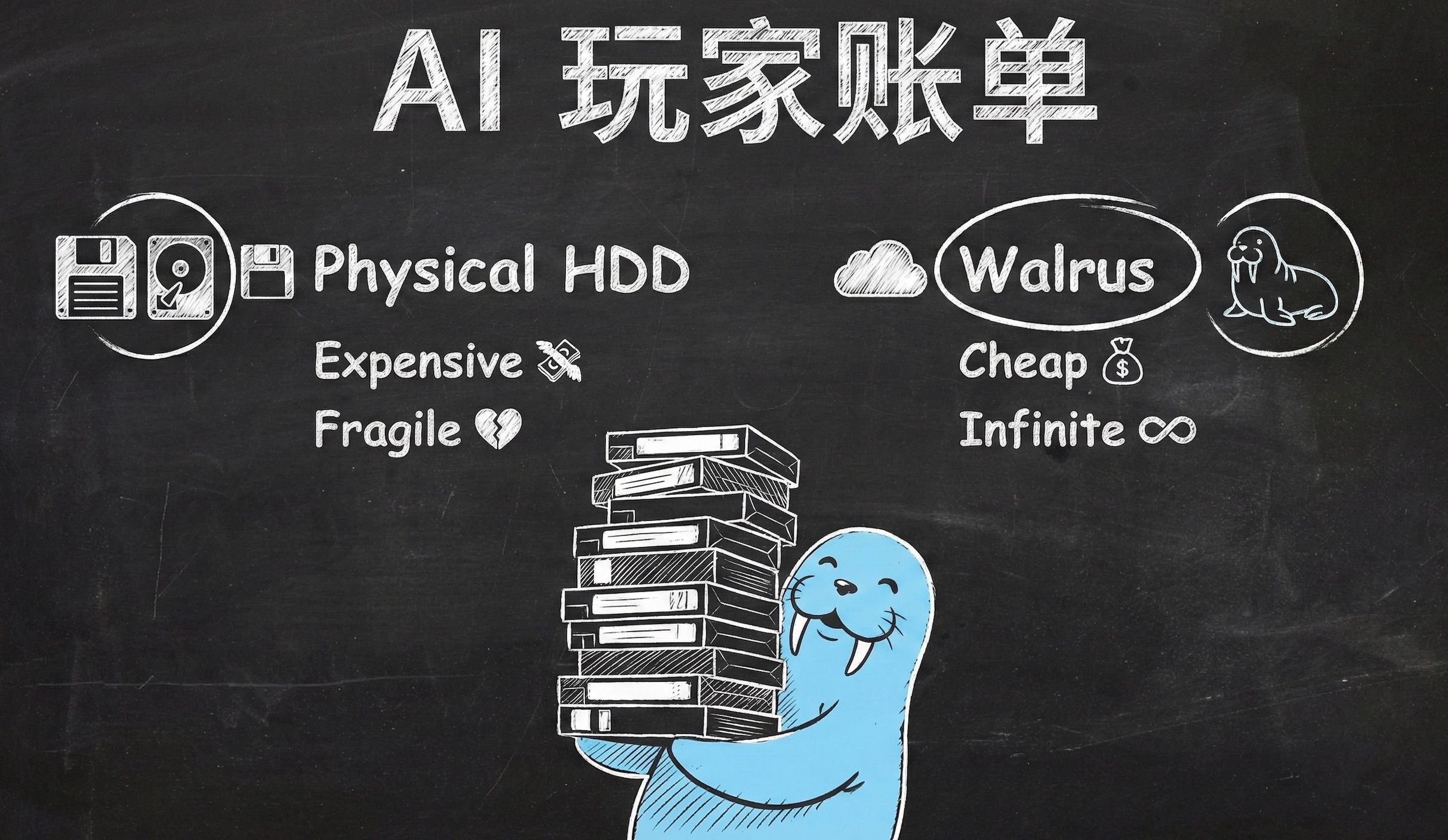 At this time, the value of Walrus's decentralized storage truly manifests. It is not a 'cloud disk' in the traditional sense, but more like a distributed NAS mounted for AI, serving as an external library in the model era. Let's skip the technical details and talk about results: annually, the storage cost of Walrus is far lower than if you were to buy high-quality hard drives, build a NAS, pay for electricity, and account for depreciation. More importantly, it doesn't require you to invest a large sum of money upfront. You are not buying equipment; you are using storage capacity as needed.