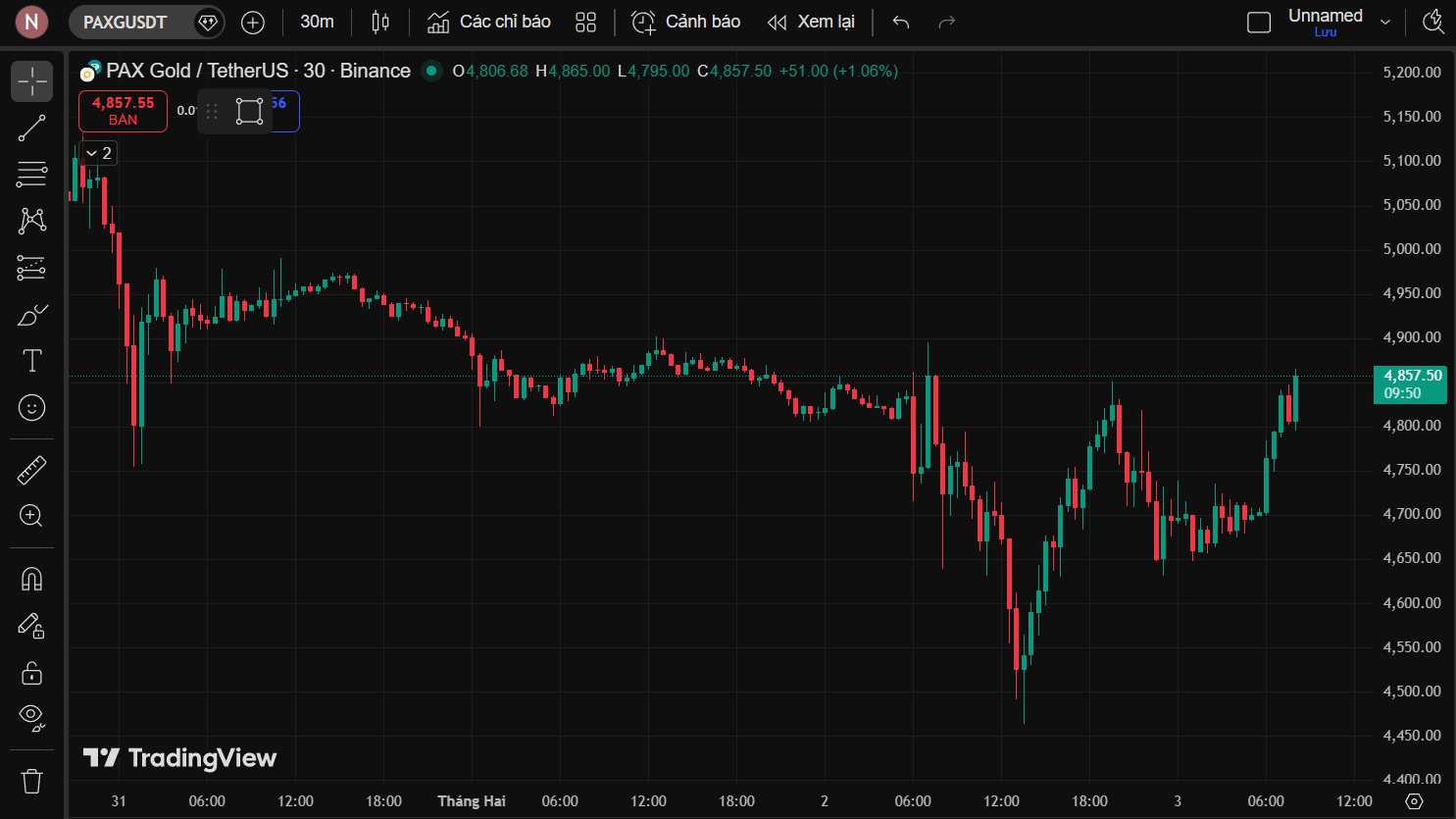 The current structure of PAXG shows that the bottom has not been breached despite the overall market still fluctuating. This is a small detail but very valuable. The price rebounds in short waves, rests, and then continues to hold higher than before.