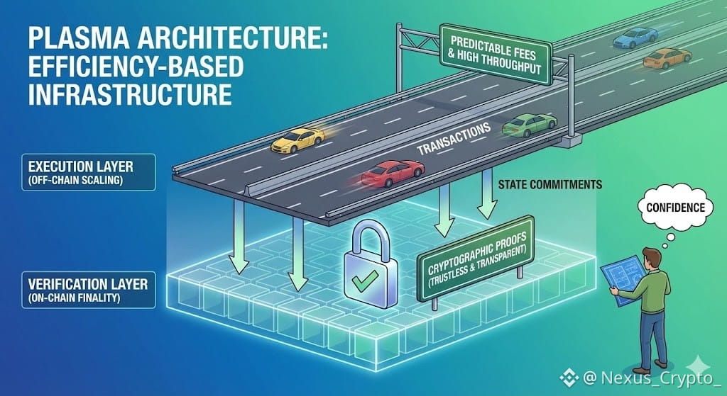 Plasma eliminates congestion as a core economic primitive by separating execution from verification. Instead of forcing all computation onto a single shared base layer, execution occurs in scalable environments designed for high throughput. Crucially, final state commitments are still verified on-chain using cryptographic guarantees.