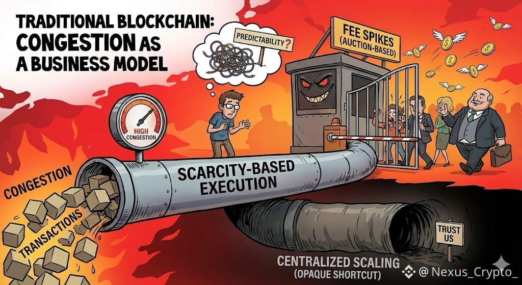 For years, blockchain scalability has been constrained by an uncomfortable truth: many networks implicitly rely on congestion as part of their economic design. Block space scarcity drives fees, fees prioritize transactions, and unpredictability becomes normalized. Developers adapt, users tolerate friction, and centralized scaling providers step in to smooth the experience—often by introducing new trust assumptions. This model works only until demand becomes sustained. At that point, its weaknesses are impossible to ignore.