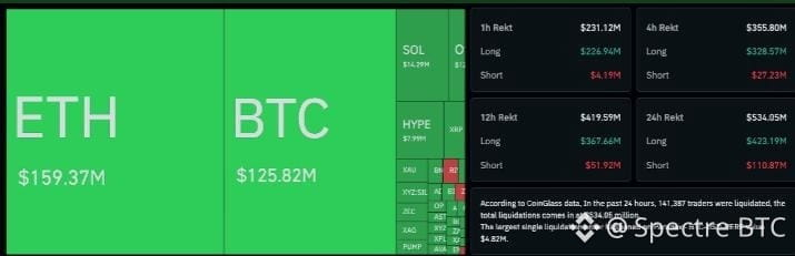 Within the crypto market, liquidations of leveraged positions are adding pressure to the pace of selling, with BTC longs seeing $127.25 million forced closed and ETH longs locking in $159.1 million in liquidations.