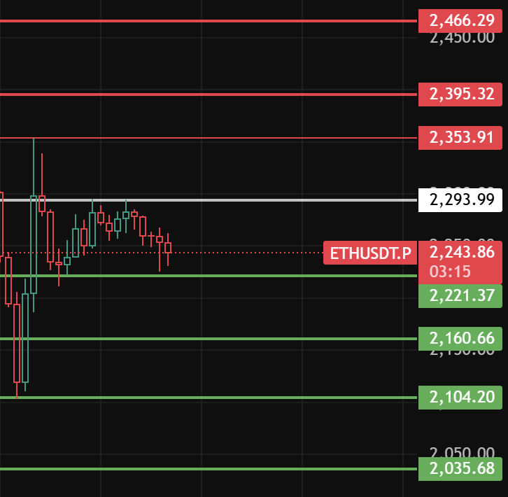 Pay attention to the position of 2294 at night for Ethereum. Only if it stabilizes above this position for the 1-2 hour level can the rebound begin. Pay attention to the resistance levels around 2354-2395-2460!