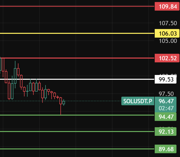 If the 1-2 hour level cannot close above 99 at night, it indicates that the small-level rebound lacks strength. Pay attention to the support levels around 94-92-89 during the next downward test!#solana