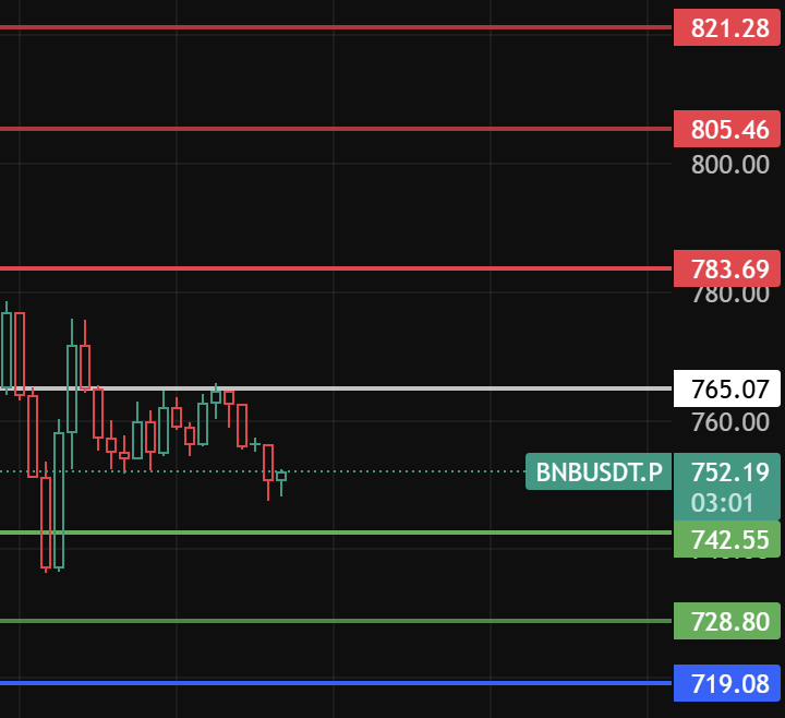 Pay attention to the position of 765 at night for BNB. Only if it stabilizes above this position for the 1-2 hour level can the rebound begin. Pay attention to the resistance levels around 783-805-821!