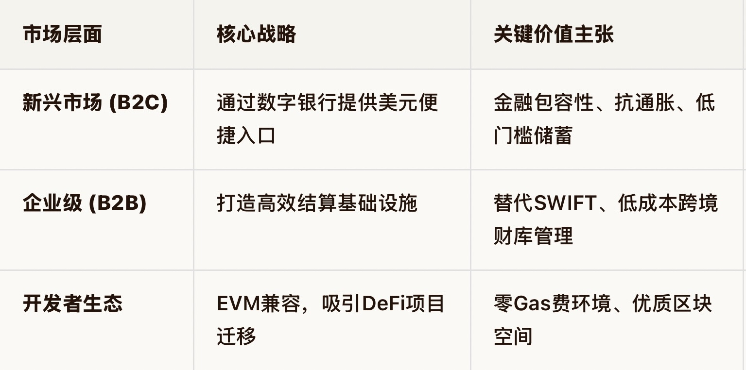 Currently, in some special regions of the world, such as the newly developed Southeast Asia for cross-border e-commerce and the severely inflationary regions of Africa, the demand for US dollar stablecoins is very strong. Traditional banks have high cross-border fees and various issues with local fiat currency rapidly depreciating, which Plasma accurately captures as entry points. Through deep cooperation with Tether, Plasma can effortlessly establish a foundation for USDT across the board. Moreover, backed by strong capital, Plasma can easily collaborate with large institutions and banks, turning competition into cooperation, achieving win-win solutions. Additionally, Plasma provides users with a three-in-one dollar consumption system for savings, consumption, and returns through Plasma One digital bank, realizing an ecological closed loop. It first attracts users through zero-fee transfers, retains them through stablecoin returns, and guides users to use stablecoins for daily consumption through cash back. This is Plasma's layered approach.