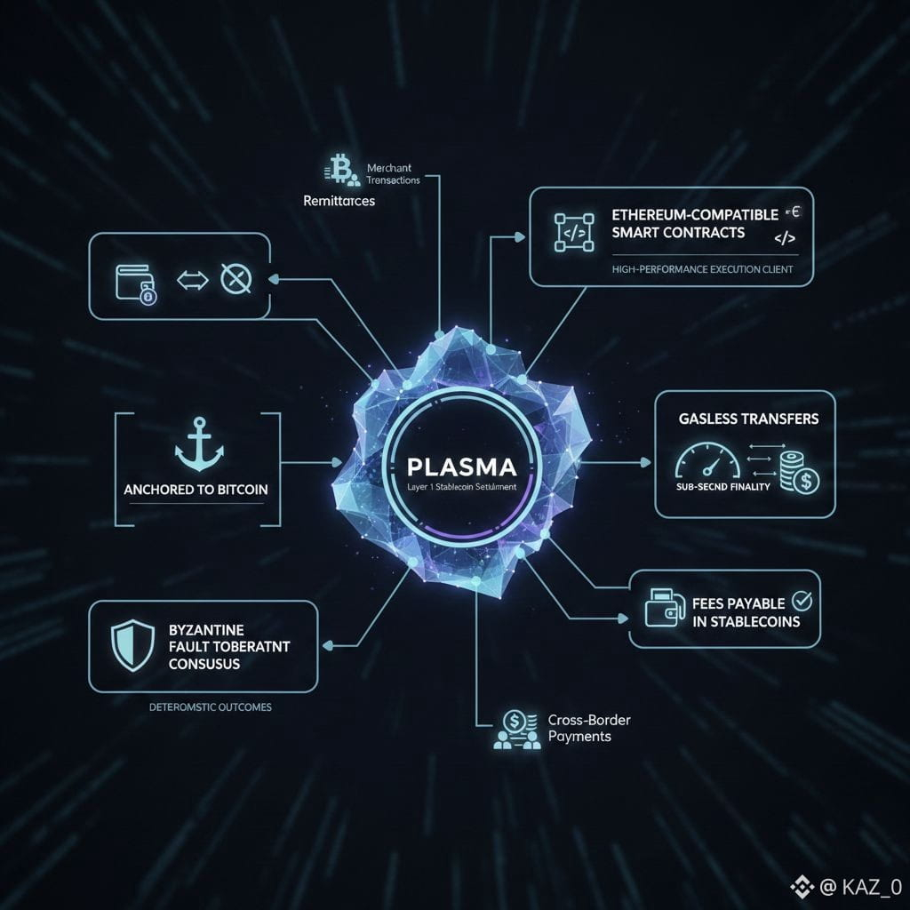 At its core, Plasma is a Layer 1 blockchain purpose-built for stablecoin settlement. That focus may appear narrow at first, but it directly addresses a growing mismatch in the market. Stablecoins now underpin remittances, payroll, merchant transactions, treasury flows, and cross-border payments. These activities demand fast settlement, predictable costs, and operational clarity. Most blockchains, however, treat stablecoins as peripheral assets, forcing them into environments optimized for speculation, variable fees, and congestion. Plasma begins from a different assumption: the network exists primarily to move stable value efficiently.