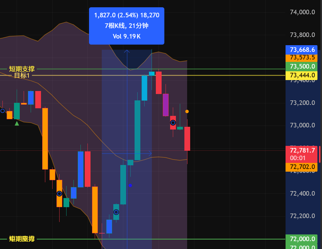 Bitcoin rebounded to 73668, an increase of 2.54%, 1827 points! Goal 1 achieved! Eat, eat, eat! #BTC $BTC