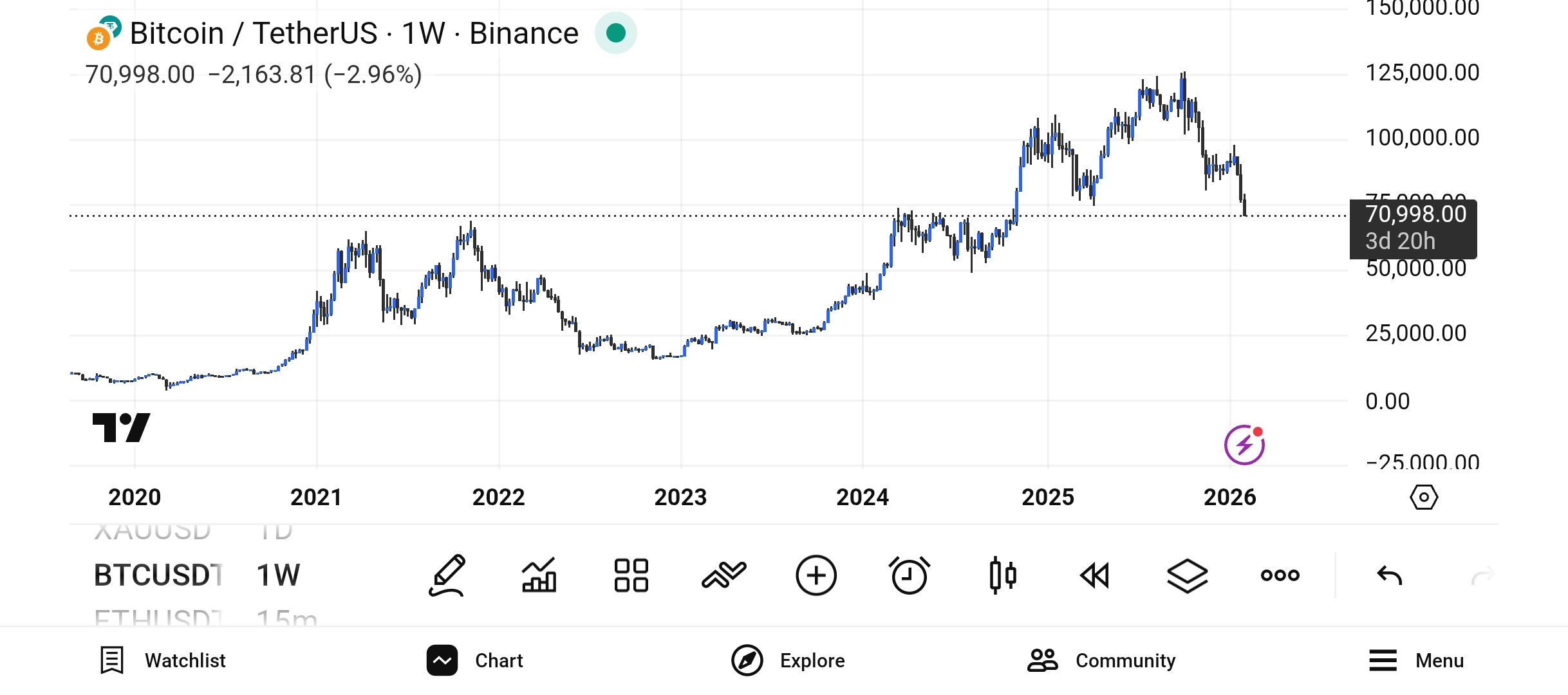 The most critical level to watch is the $68,500 – $70,000 zone. This area represents the 200-week Exponential Moving Average (EMA). Historically, as long as Bitcoin stays above this line, the macro bull trend remains intact. A weekly close below this could signal a deeper correction toward $60,000.