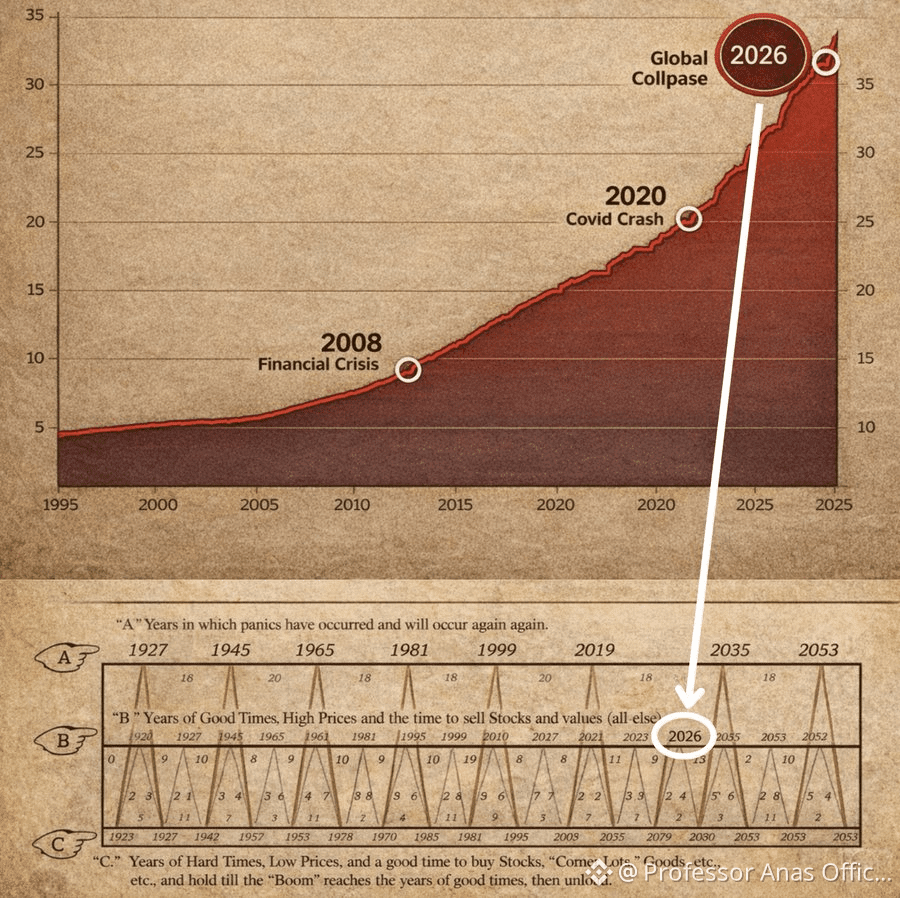 This chart circulating on social media is saying that there will be a global collapse in 2026.