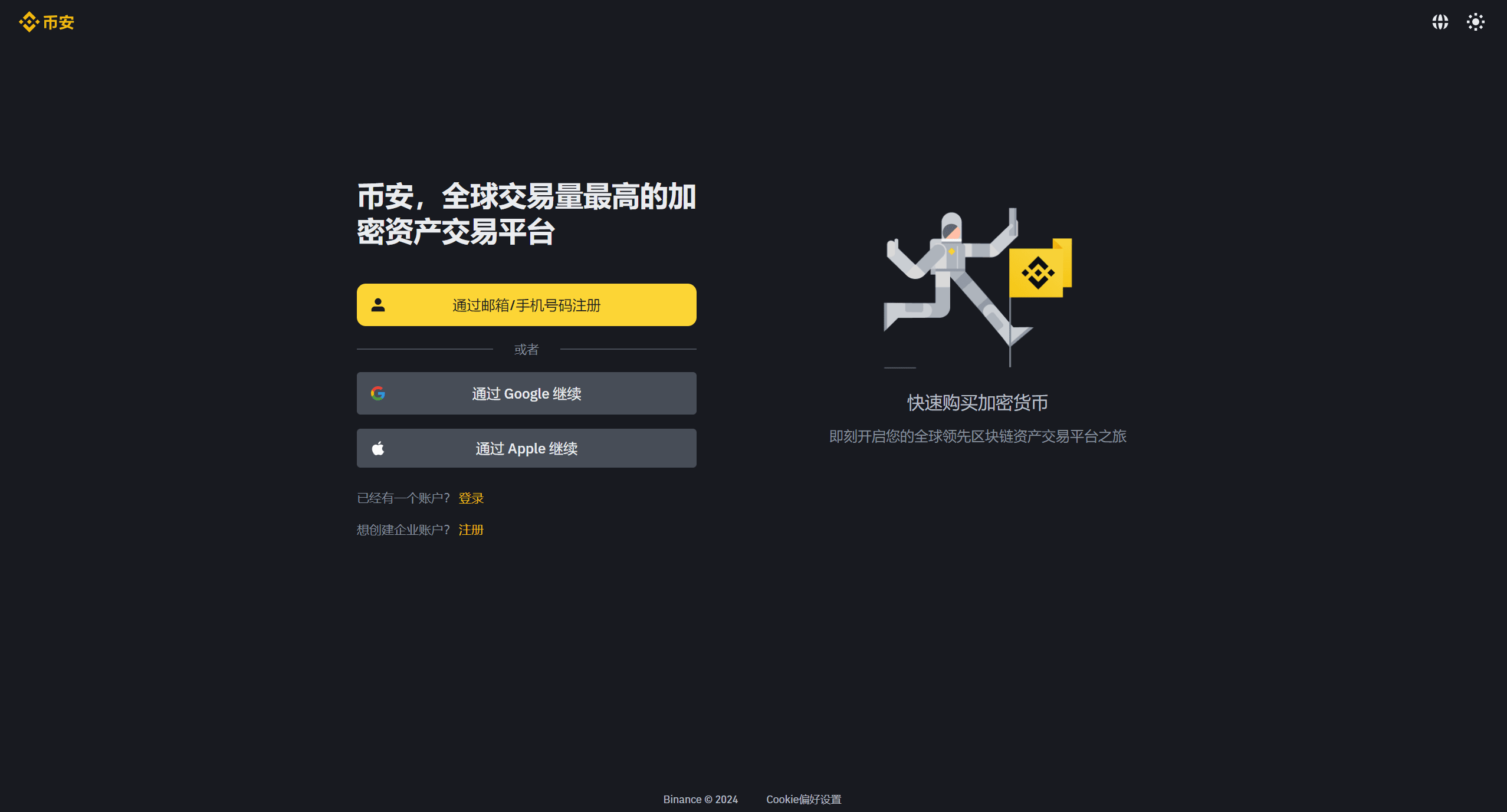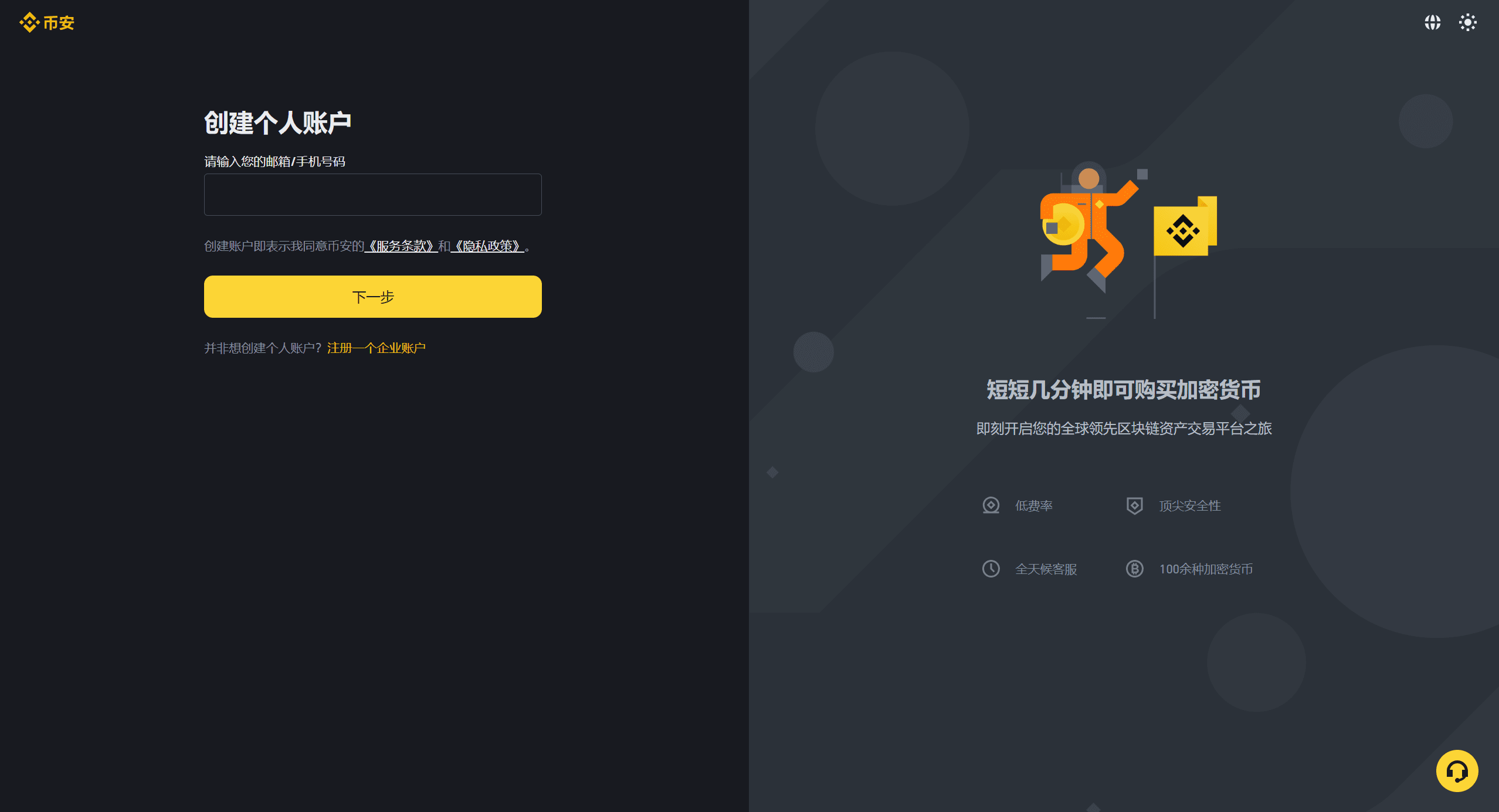 Step 1: Visit the Binance registration page