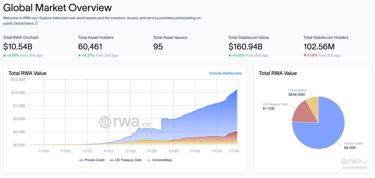 Market data shows a steady increase in RWA's market capitalization, currently at $7.3B.