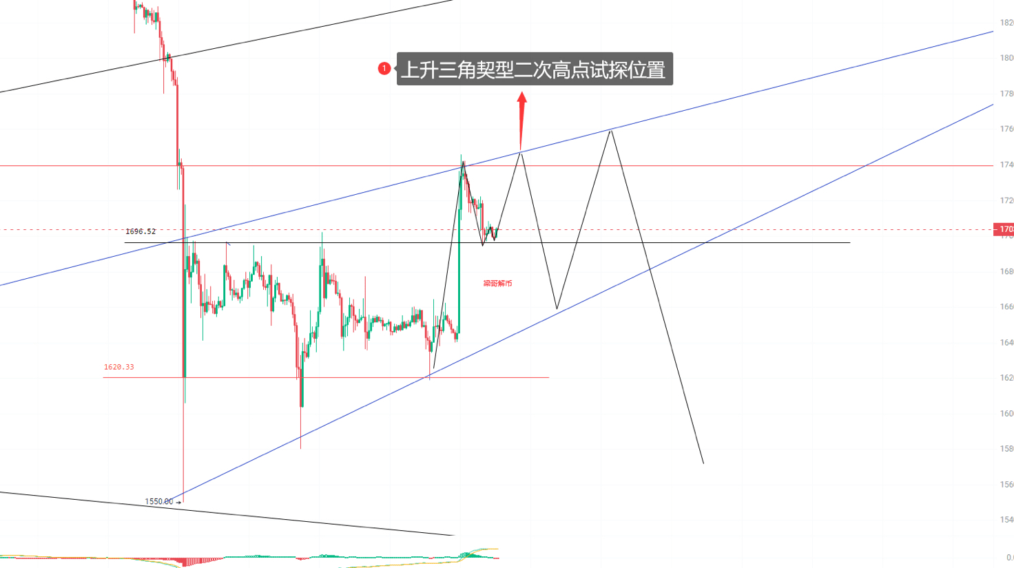 操作思路:以太坊市价1698附近做多防守1691目标1710-1720 以太坊计划委托1690附近做空防守1715目标1670